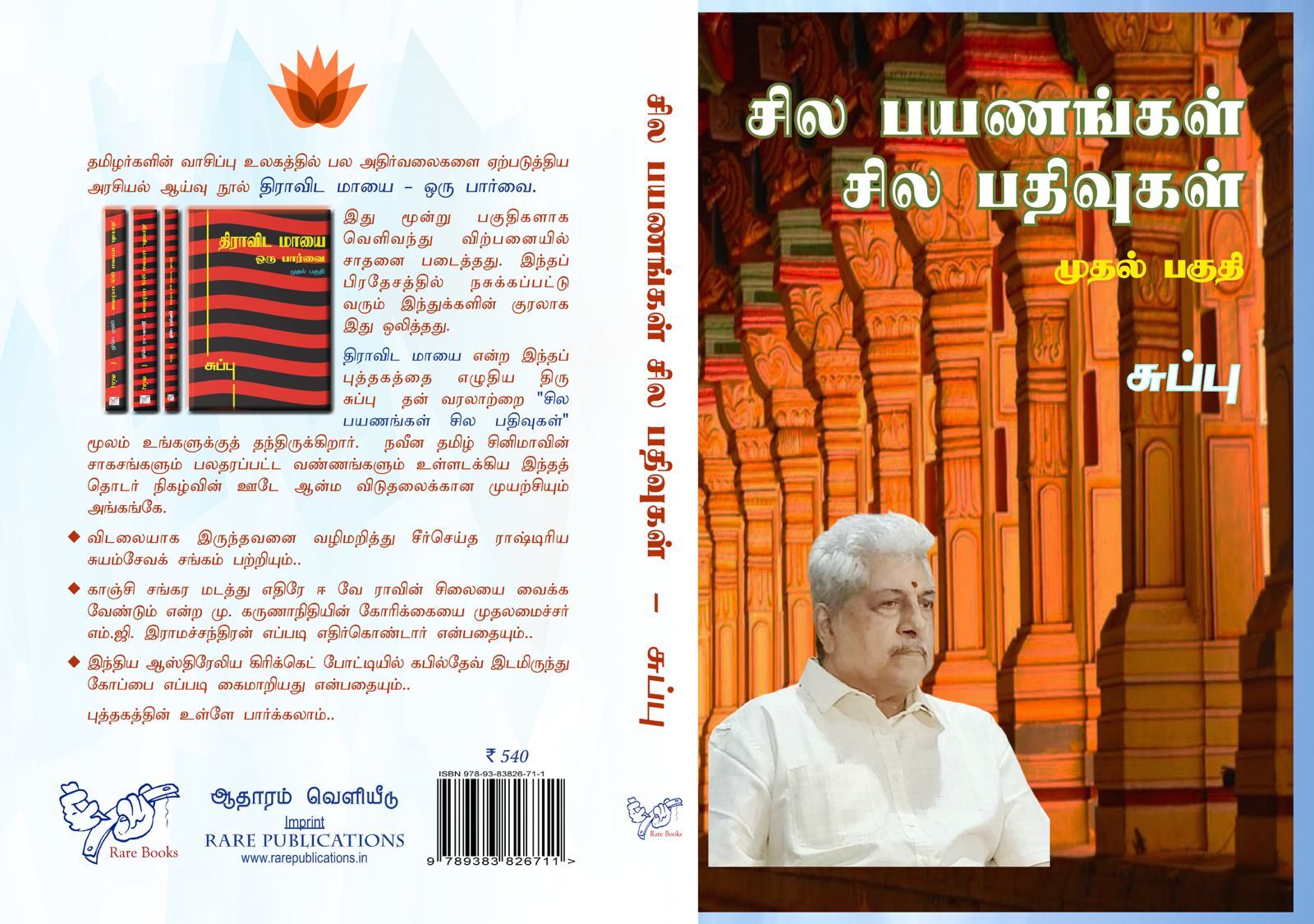 “Sila Payanangal, Sila Padhivugal” is a reflective collection of Subbu’s experiences, tracing his journey from early struggles to political and social observations, offering personal insights into Tamil Nadu’s public and cultural landscape.